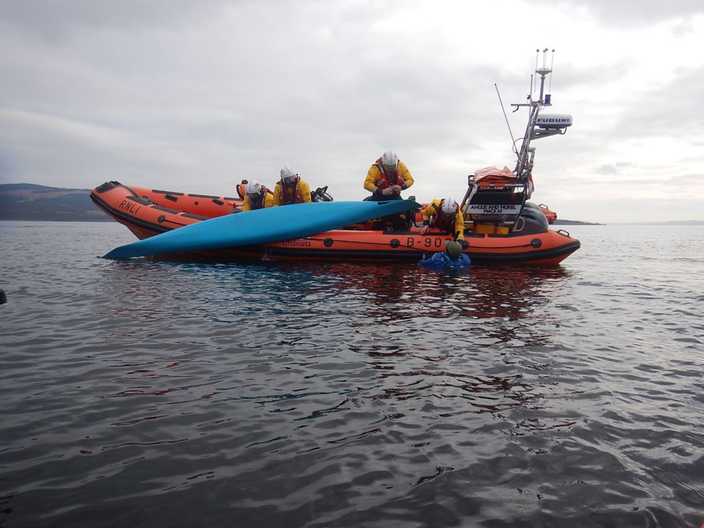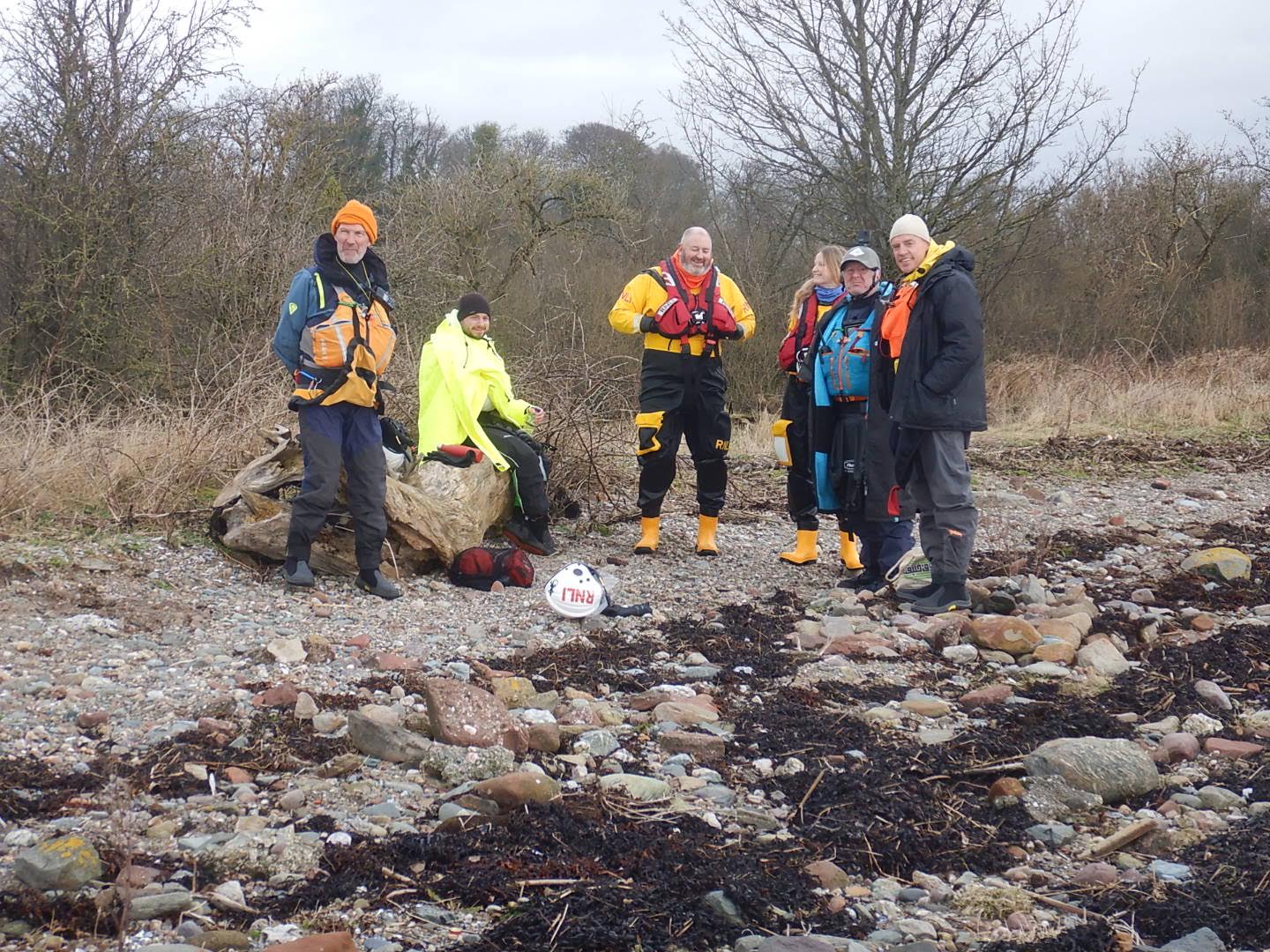 The scenario involved a party of 8 kayakers getting split into two groups by high winds. One group ended up on Ardmore Point, with one of the paddlers suffering a dislocated shoulder. The remaining kayakers radioed for help. Whilst the lifeboat was proceeding to deal with the Ardmore group, this group suffered a capsize and were unable to get the kayaker back in their boat and radioed for further help.